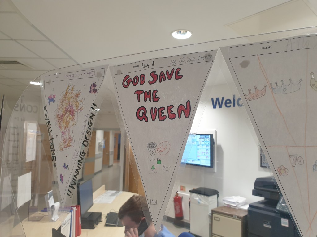 Main: Jubilee decorations by children. There are about fourteen tons of this stuff distributed around the place.