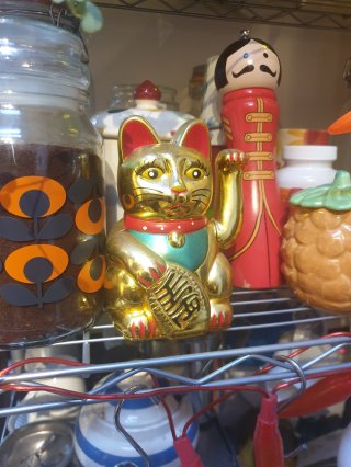 Middle inset: Lucky prosperity-bringing Chinese cat in our kitchen. Must see if we still have the receipt for it.