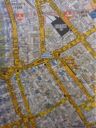 Lower inset: Euston Station and surrounding areas, where the Phantom Flying Bum of Old London Town was spotted boarding the Northern Line southbound to Colliers Wood.